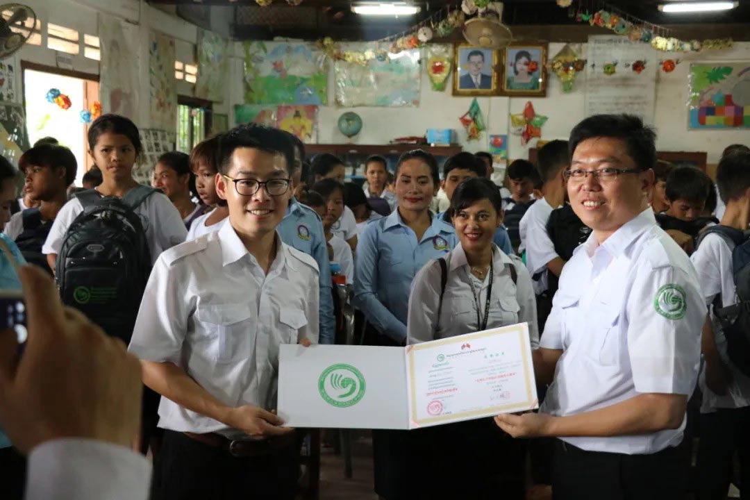 对余洲而言,“传播”远不止是信息的传递,它更关乎人与人之间、文化与文化之间,如何真正理解彼此。从财务管理专业毕业后,他的兴趣并未止步于数字和市场,凭借本科在校几年间支持国际交流工作的经验,成功跨专业得以前往柬埔寨孔子学院担任下设语言与文化中心负责人。在高棉文明的发源地茶胶省,他与当地的非营利组织和学校通力协作,从零到一搭建了这里的孔子课堂,筹建了中文图书馆,并主持多项中柬文化交流项目,获当地政府与机构嘉奖。